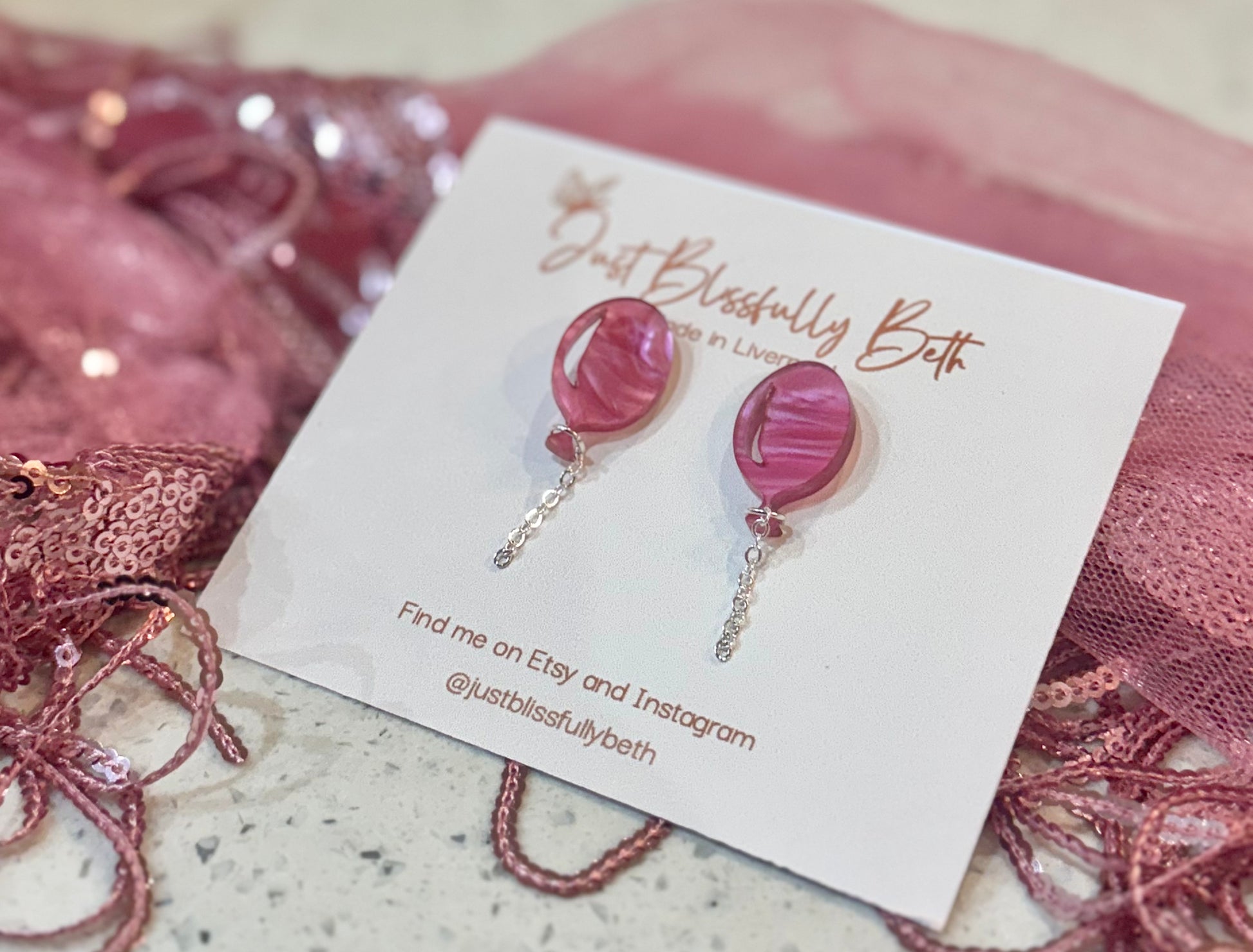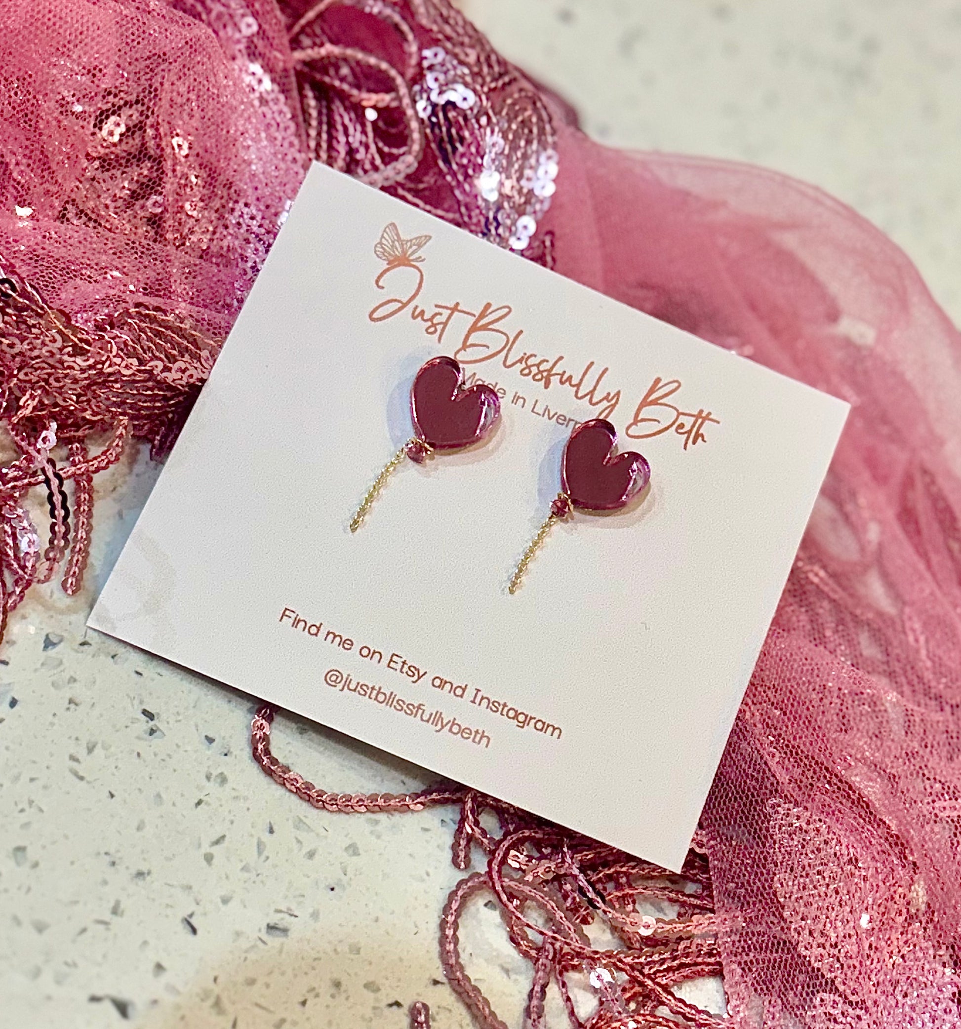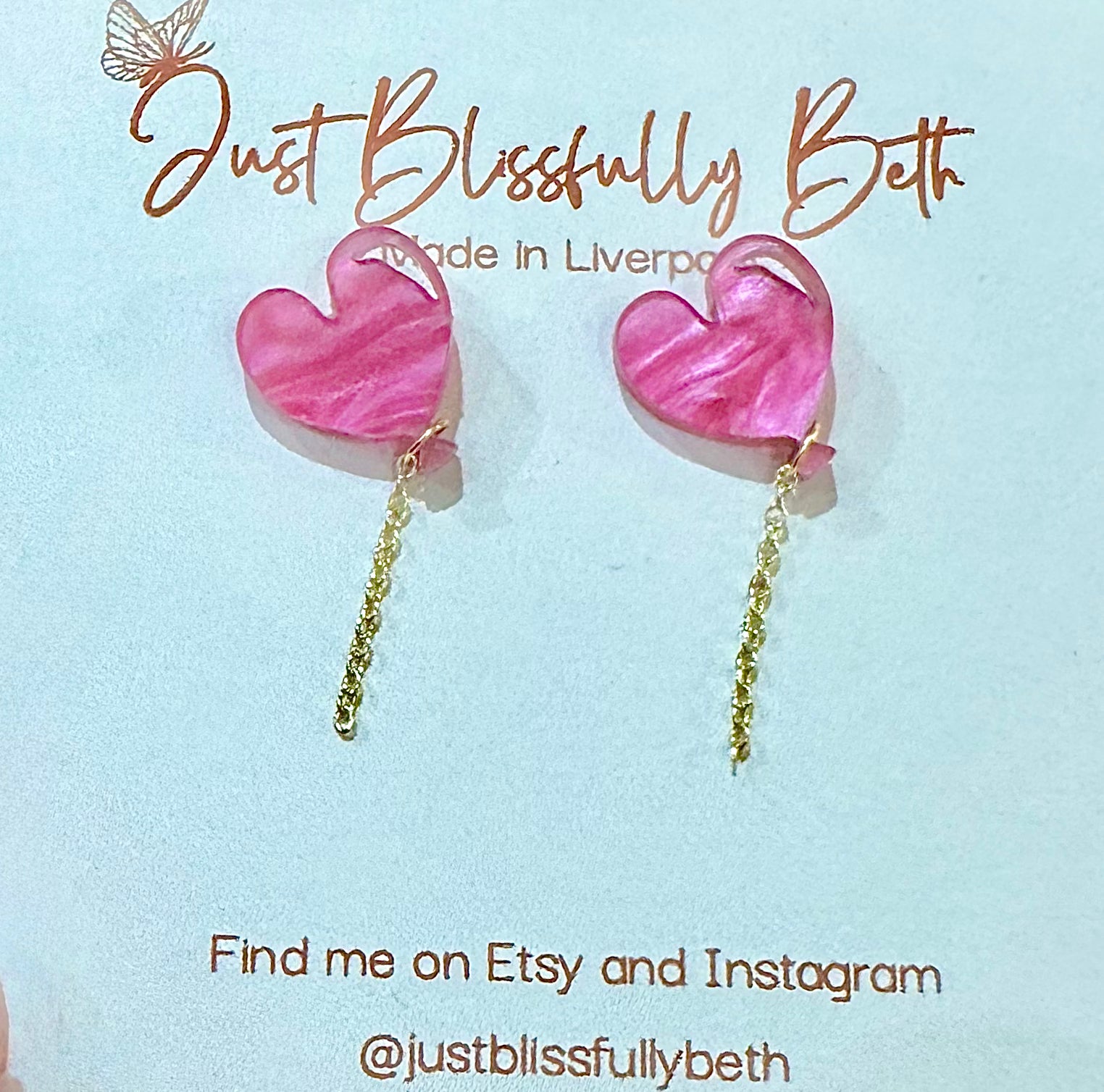 Each pair of JustBlissfullyBeth earrings are slow-made by hand in Liverpool by me with love. As each pair are handmade, they will vary slightly from pictures and may have minor imperfections making them beautiful one offs! They may also differ in the shade.