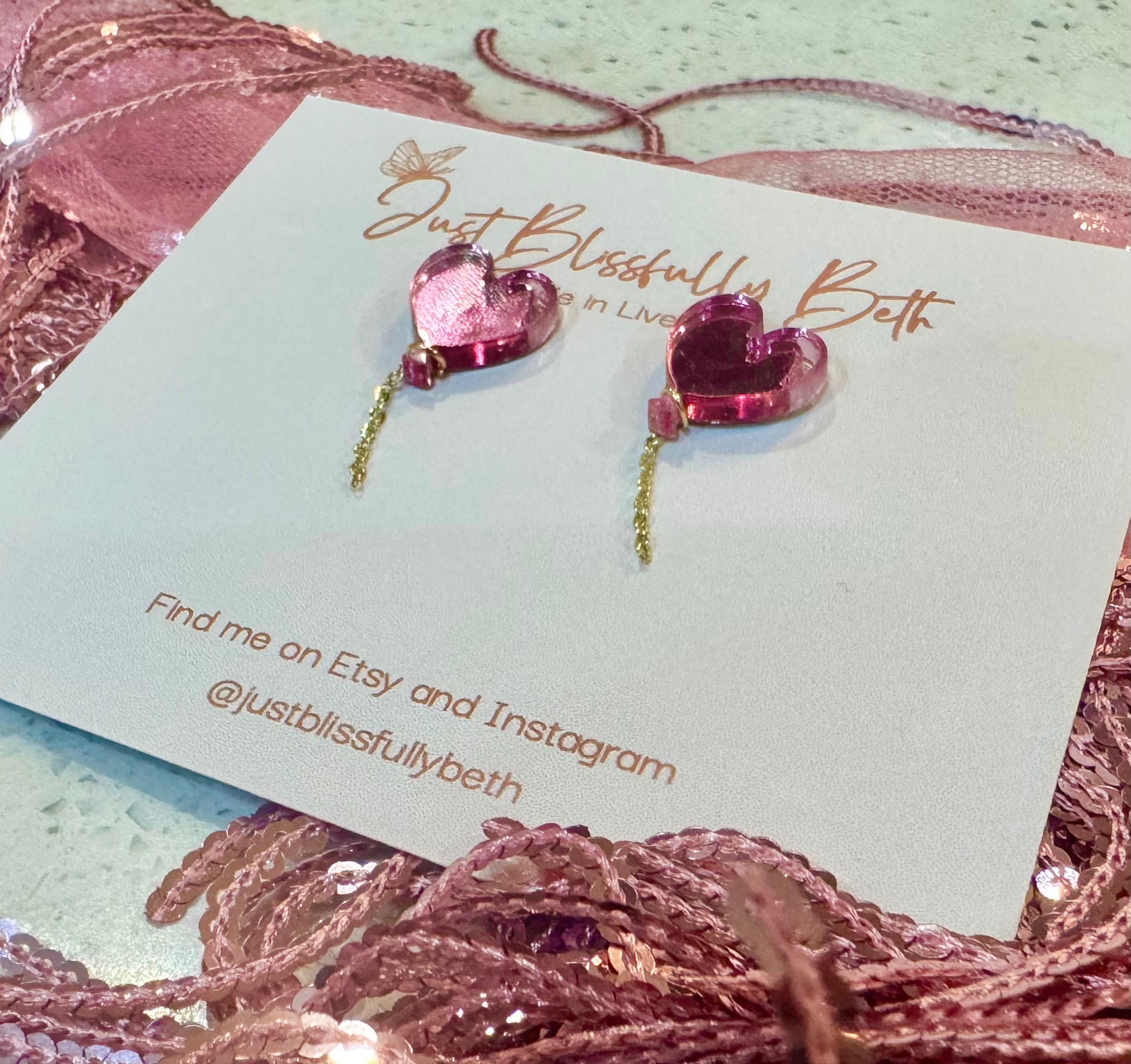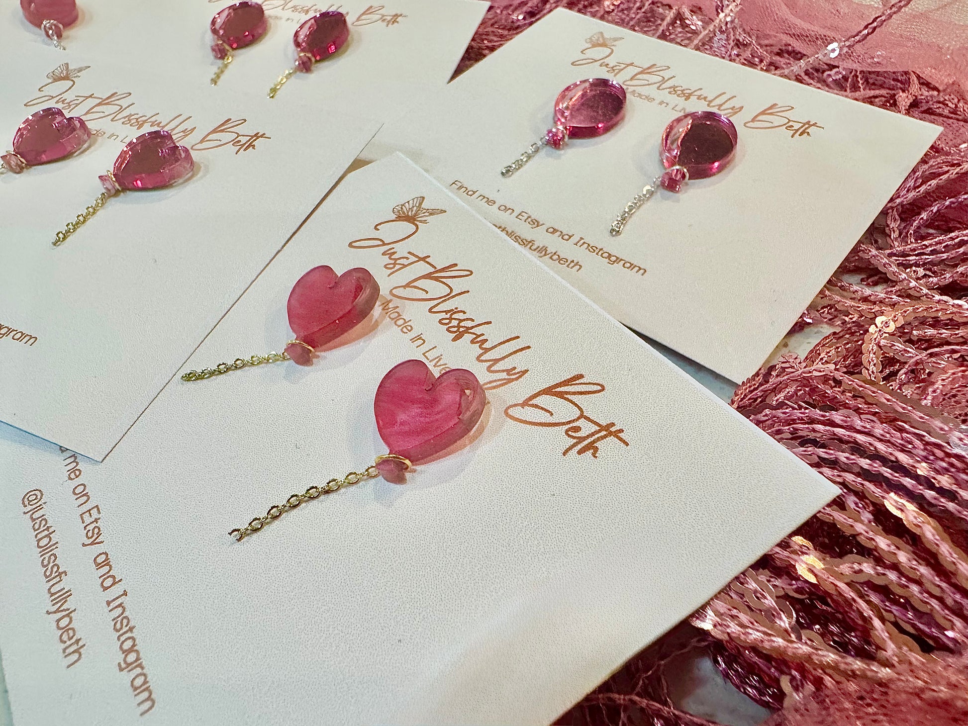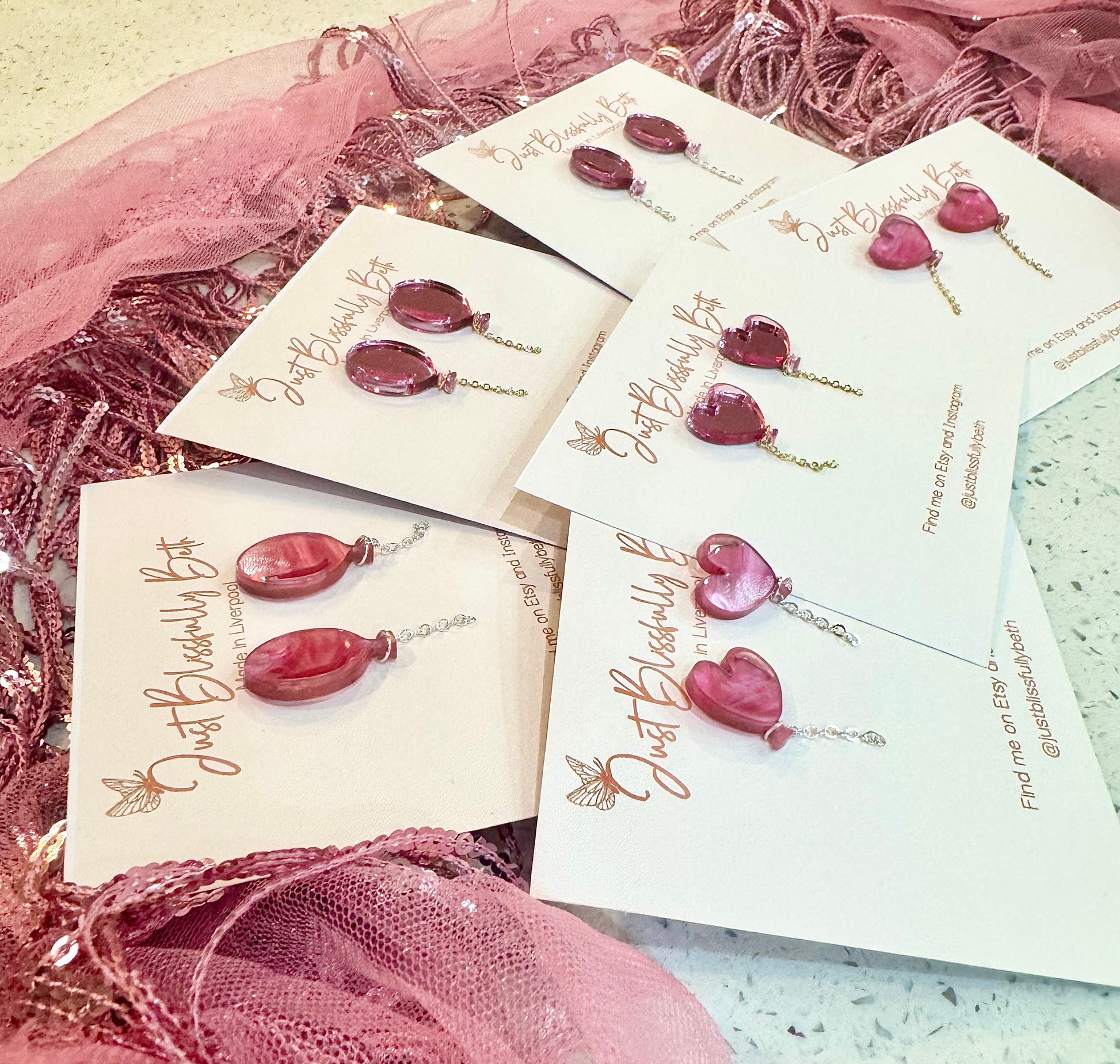 Each pair of JustBlissfullyBeth earrings are slow-made by hand in Liverpool by me with love. As each pair are handmade, they will vary slightly from pictures and may have minor imperfections making them beautiful one offs! They may also differ in the shade.