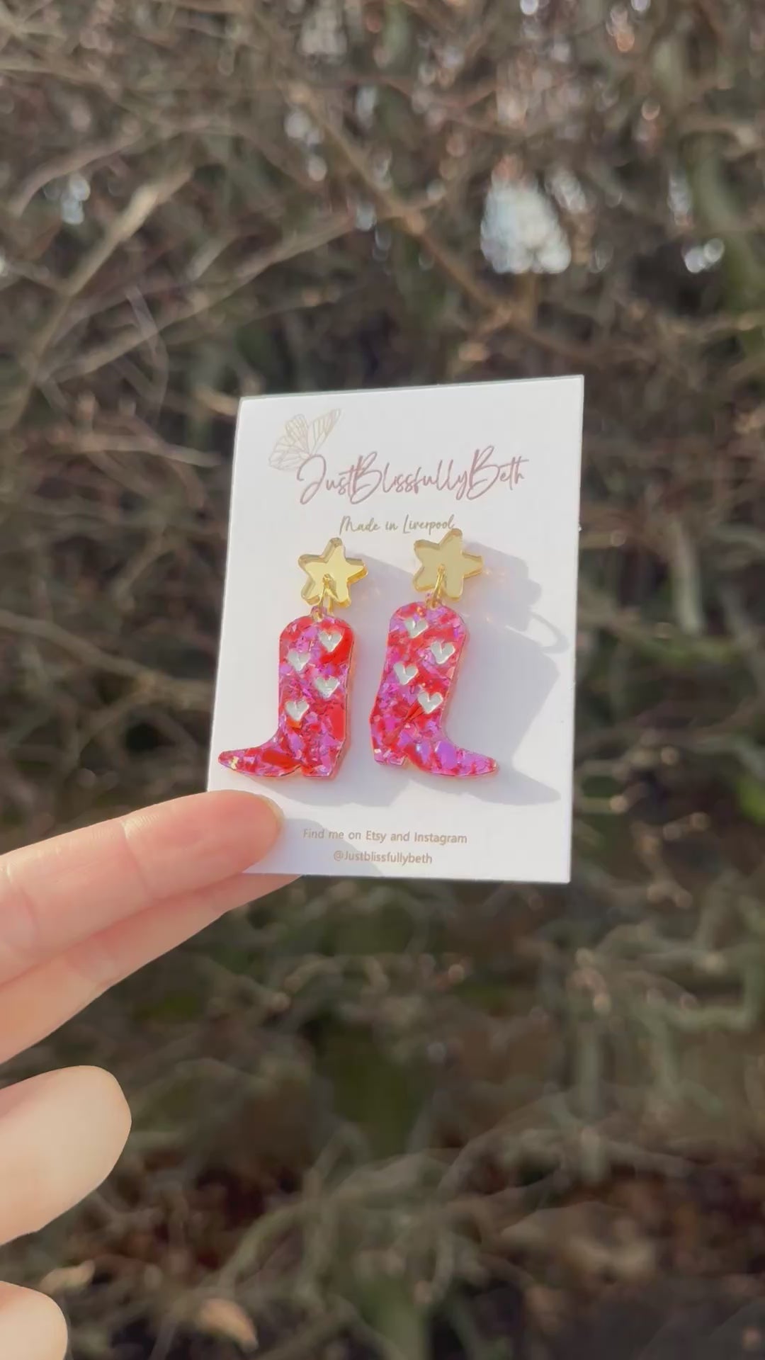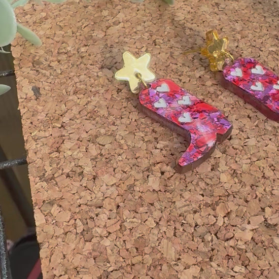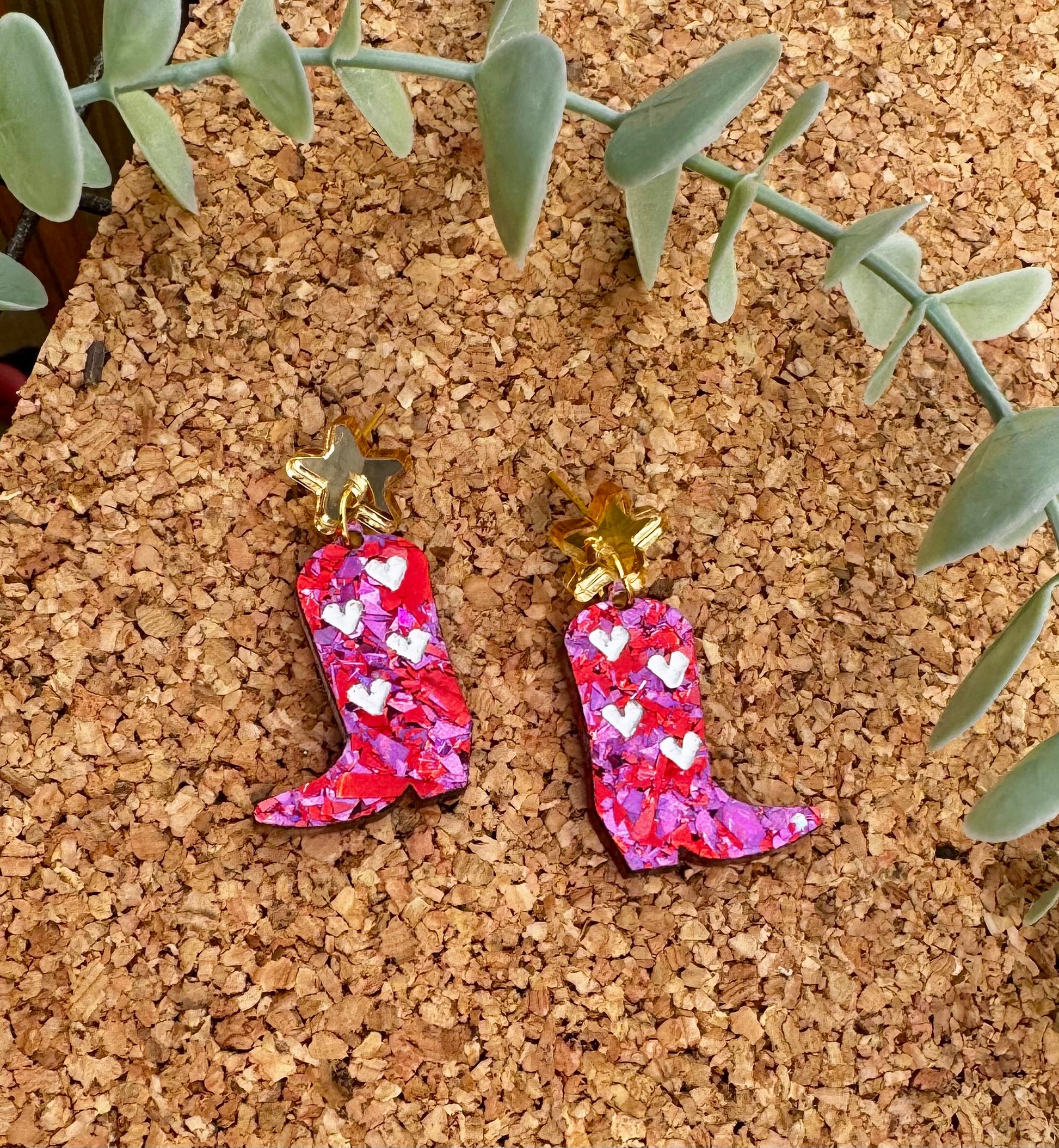 Acrylic Cowboy shaped boots with an acrylic star topped stud earring.