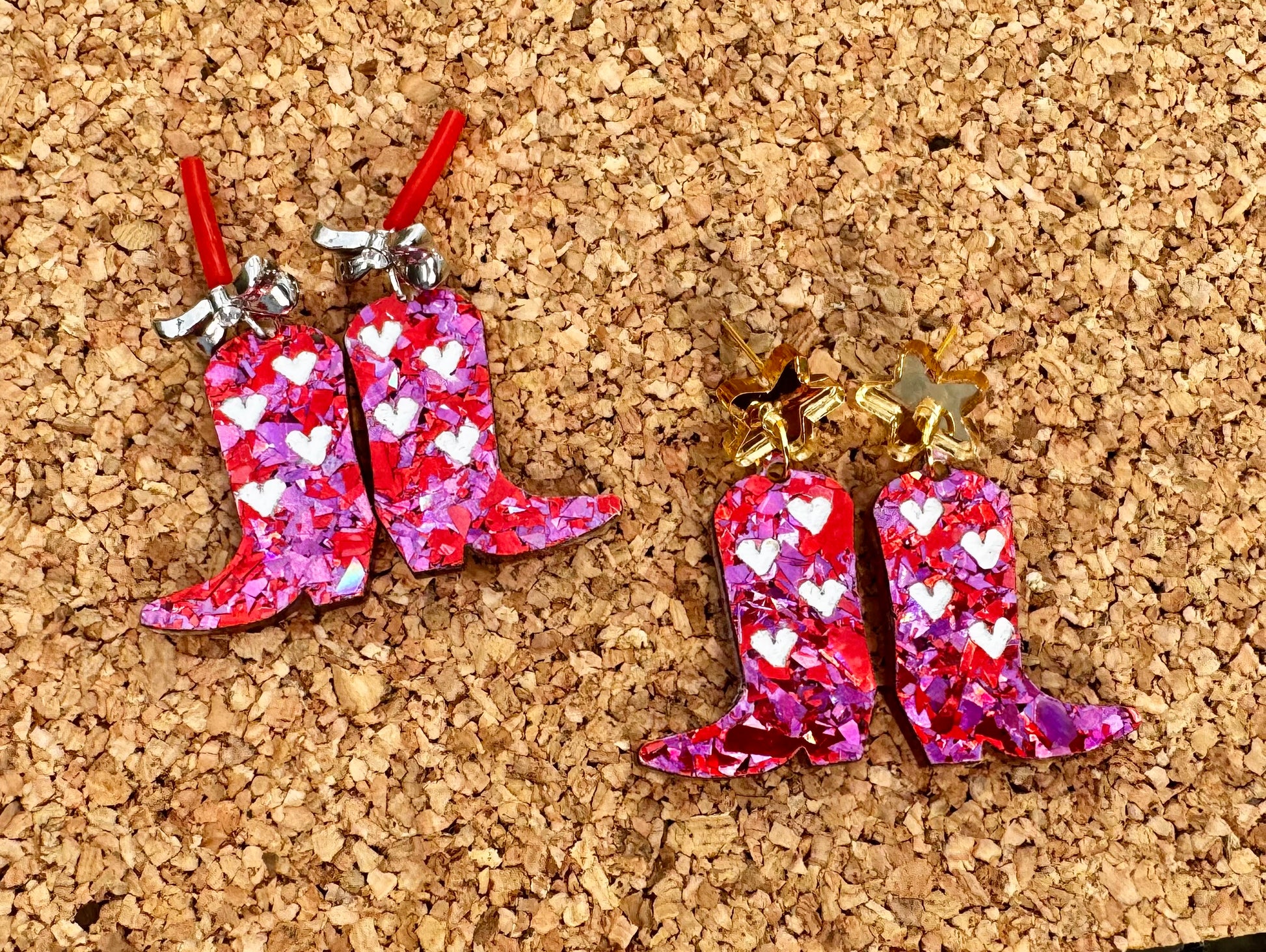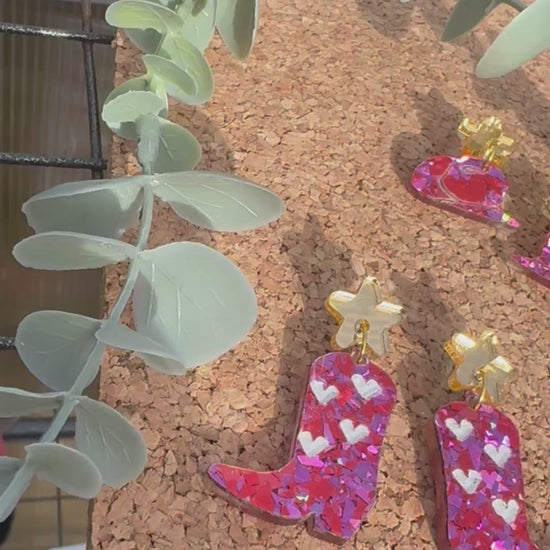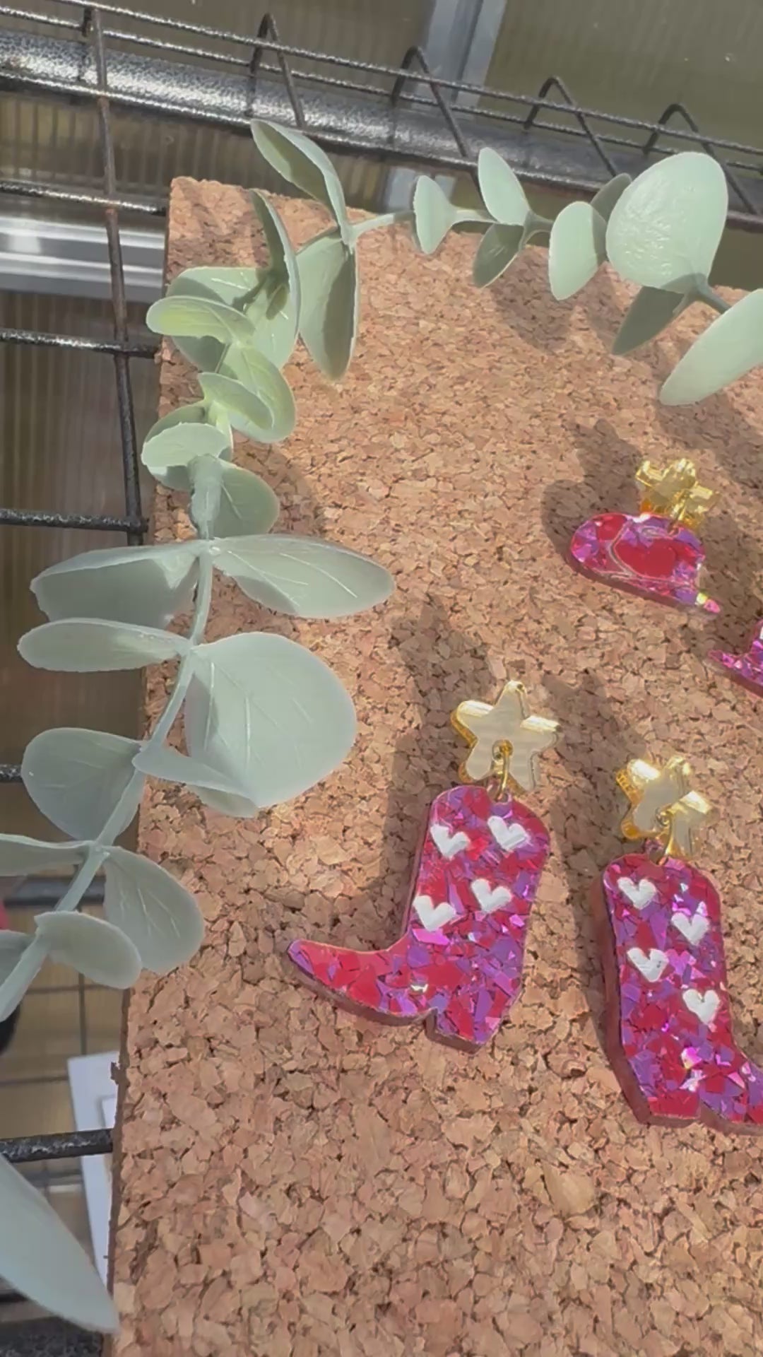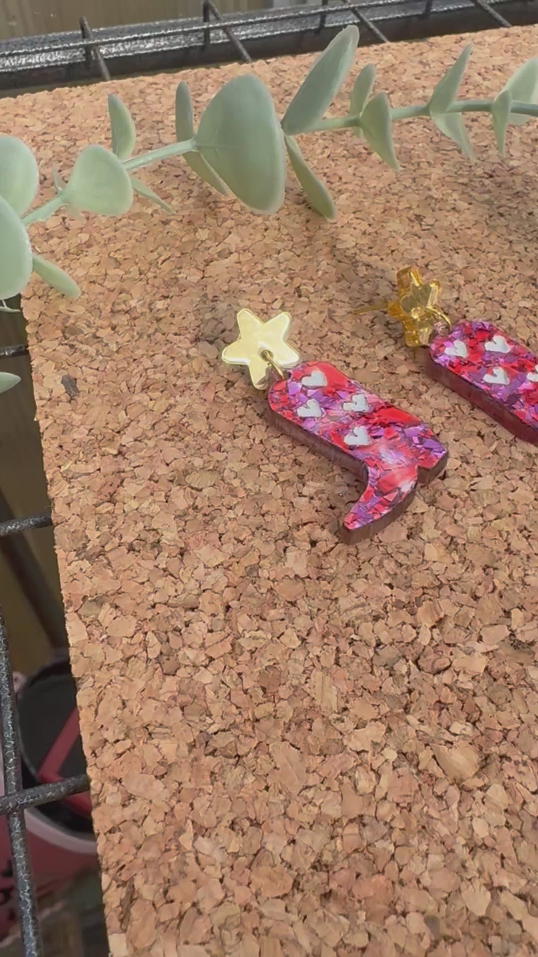 Acrylic Cowboy shaped boots with an acrylic star topped stud earring.
