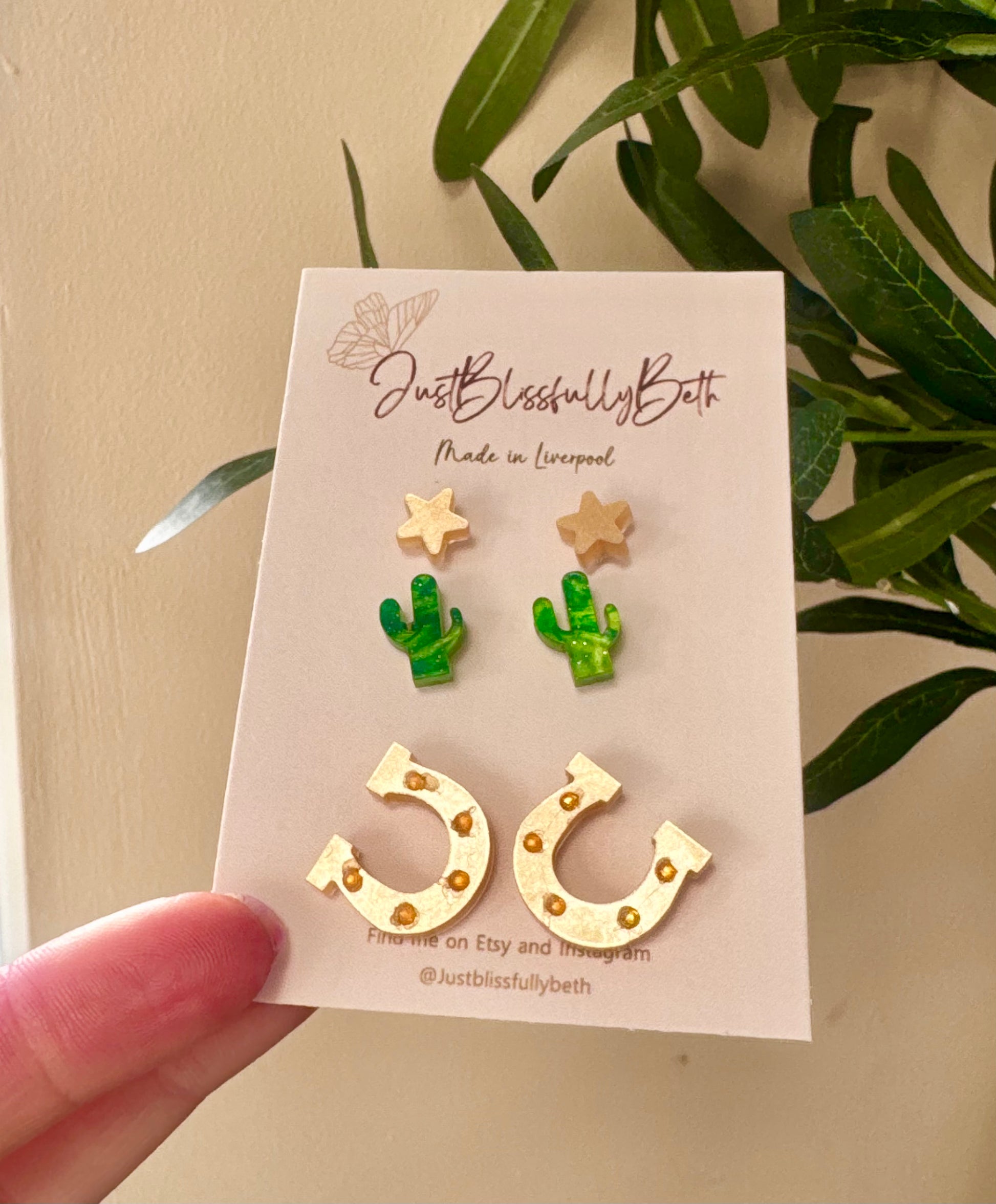 Each pair of JustBlissfullyBeth earrings are slow-made by hand in Liverpool by me with love. As each pair are handmade, they will vary slightly from pictures and may have minor imperfections making them beautiful one offs! They may also differ in the shade.